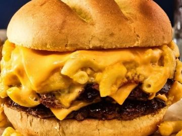Our amazing Hulk Burger with our in house Mac n Cheese scooped on top…