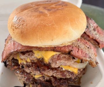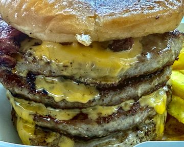 4 x all beef patties, cheese, onion, brisket, burger sauce