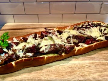 100% Homemade Ground Brisket / Beef seasoned only with salt and pepper. Topped with onion, cheese and our amazing 12hour oak smoked brisket.