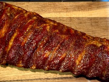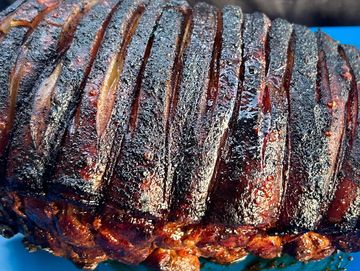 Smoked for several hours low & slow on our own offset smoker.. A feast fit for a King